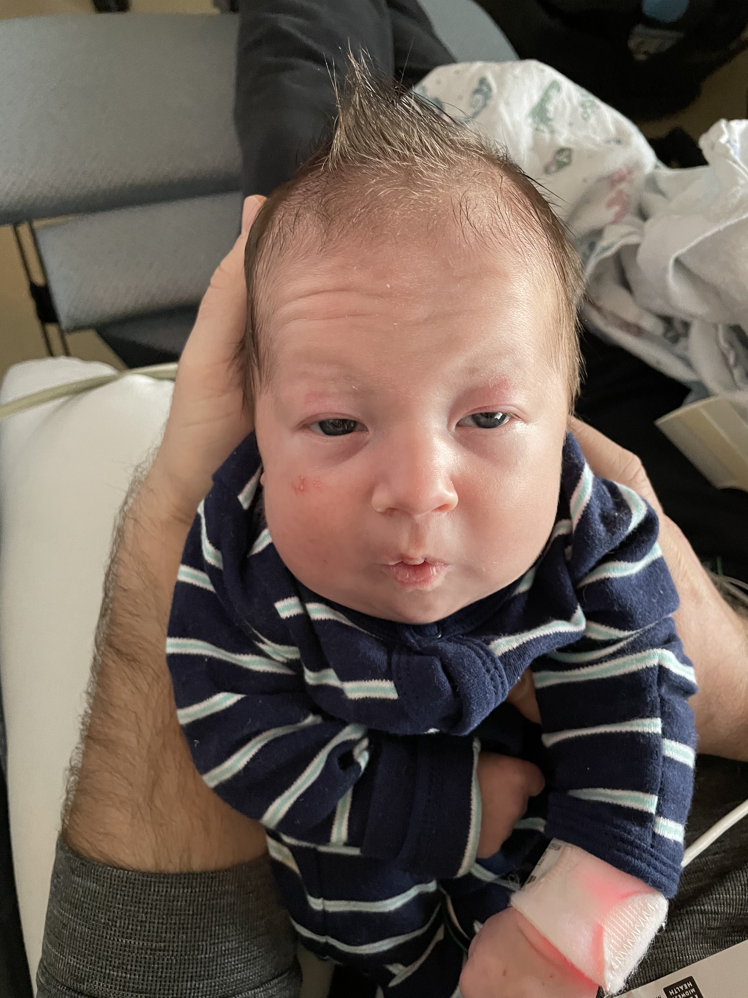 As previously mentioned, Dax is very tense. He has to be on medicine to help relax his muscles. In the pictures above you can see that his hands are relaxed and his fists aren’t clenched. And of course, Tyson had to have some fun with all of his hair and give the little guy a mohawk.