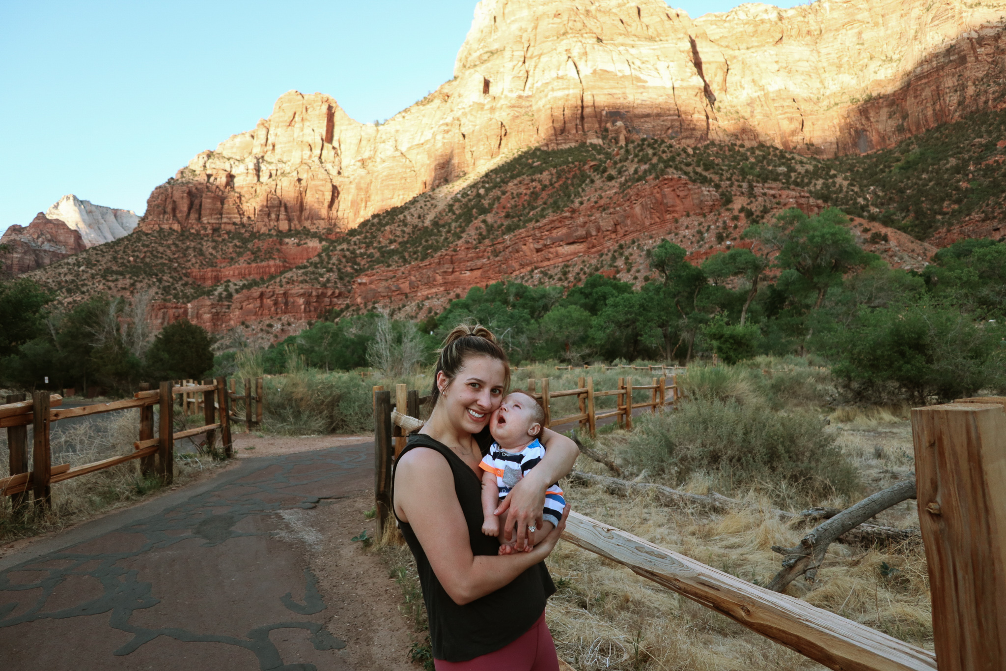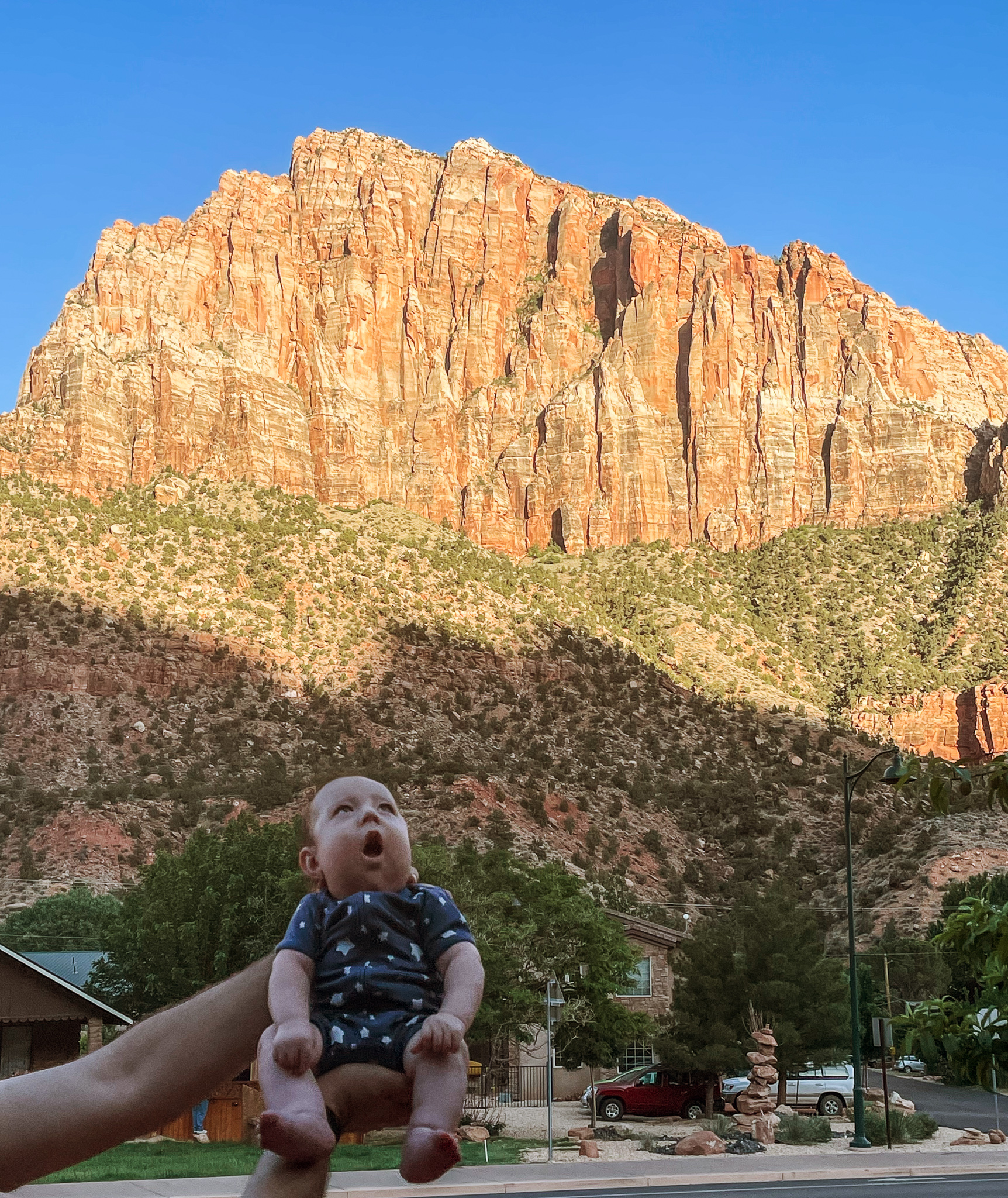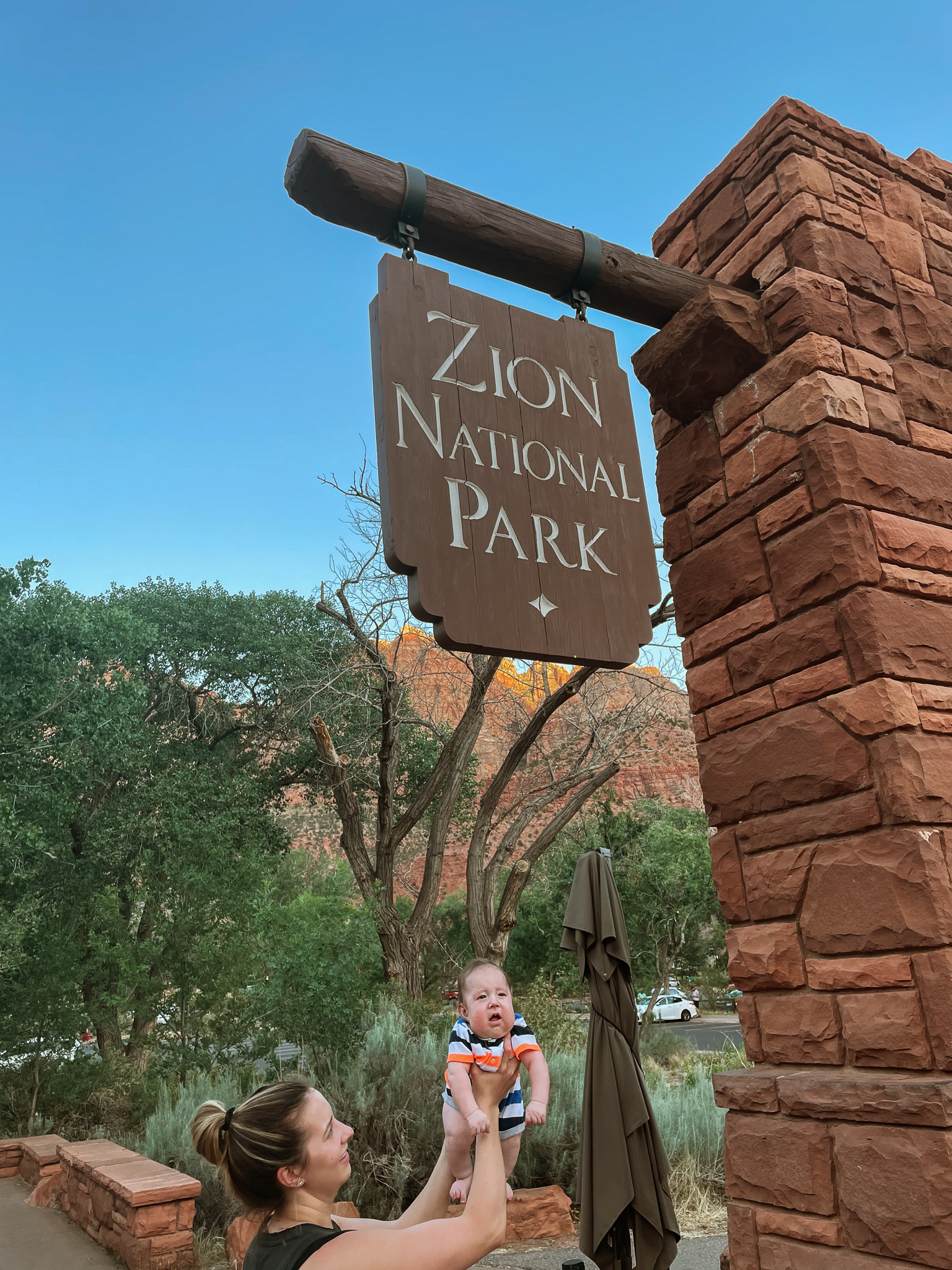 The next stop on our trip was Zion National Park. On our first night, we stayed at Quail Creek RV, about 45 mins from Zion – we stayed there long enough to have an outdoor movie night and to do laundry (there’s ALWAYS laundry). Tyson was fortunate enough to find last minute availability at Zion Canyon Campground and RV Park so we stayed there the next two nights and we loved it! We were about a half mile away from Zion and walking distance from little shops and restaurants so it was the perfect location. Dax even got to taste a little vanilla ice cream! We had great weather the entire stay and Dax got to take a nap outside. We learned that Dax really loves the outdoors, it seems to calm him. We went on the only pet friendly trail in Zion, Pa’rus Trail. Ozzie attempted to walk it all, but we would’ve been out past our bedtime.