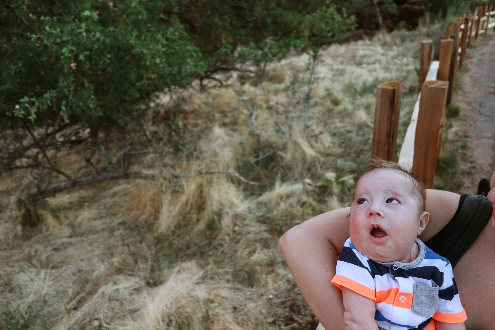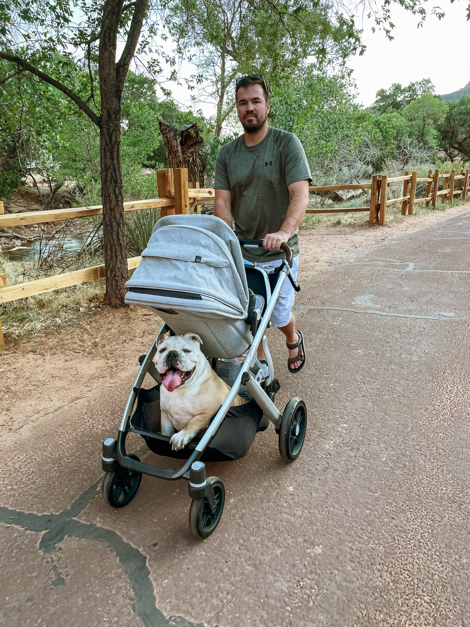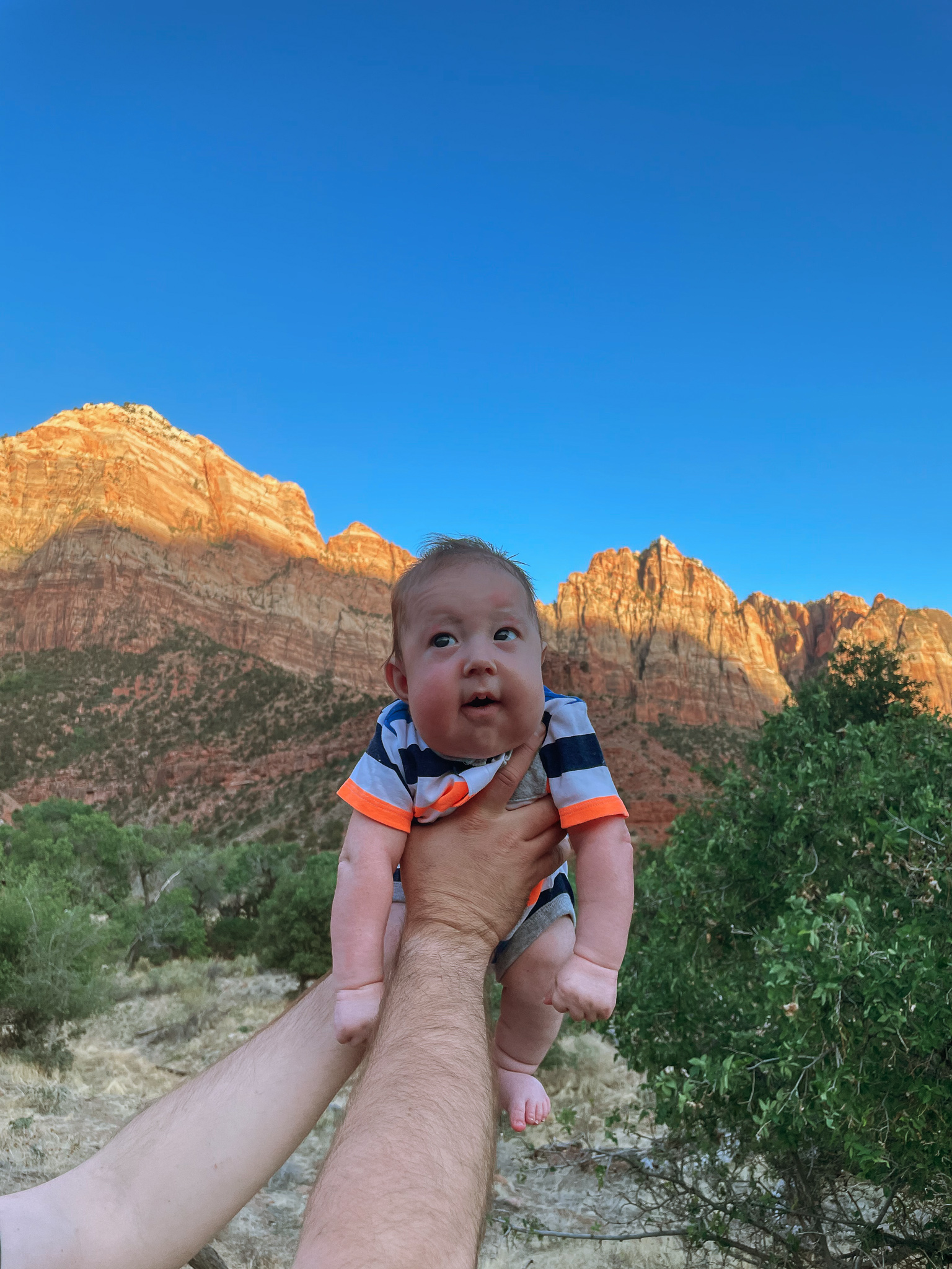 The next stop on our trip was Zion National Park. On our first night, we stayed at Quail Creek RV, about 45 mins from Zion – we stayed there long enough to have an outdoor movie night and to do laundry (there’s ALWAYS laundry). Tyson was fortunate enough to find last minute availability at Zion Canyon Campground and RV Park so we stayed there the next two nights and we loved it! We were about a half mile away from Zion and walking distance from little shops and restaurants so it was the perfect location. Dax even got to taste a little vanilla ice cream! We had great weather the entire stay and Dax got to take a nap outside. We learned that Dax really loves the outdoors, it seems to calm him. We went on the only pet friendly trail in Zion, Pa’rus Trail. Ozzie attempted to walk it all, but we would’ve been out past our bedtime.