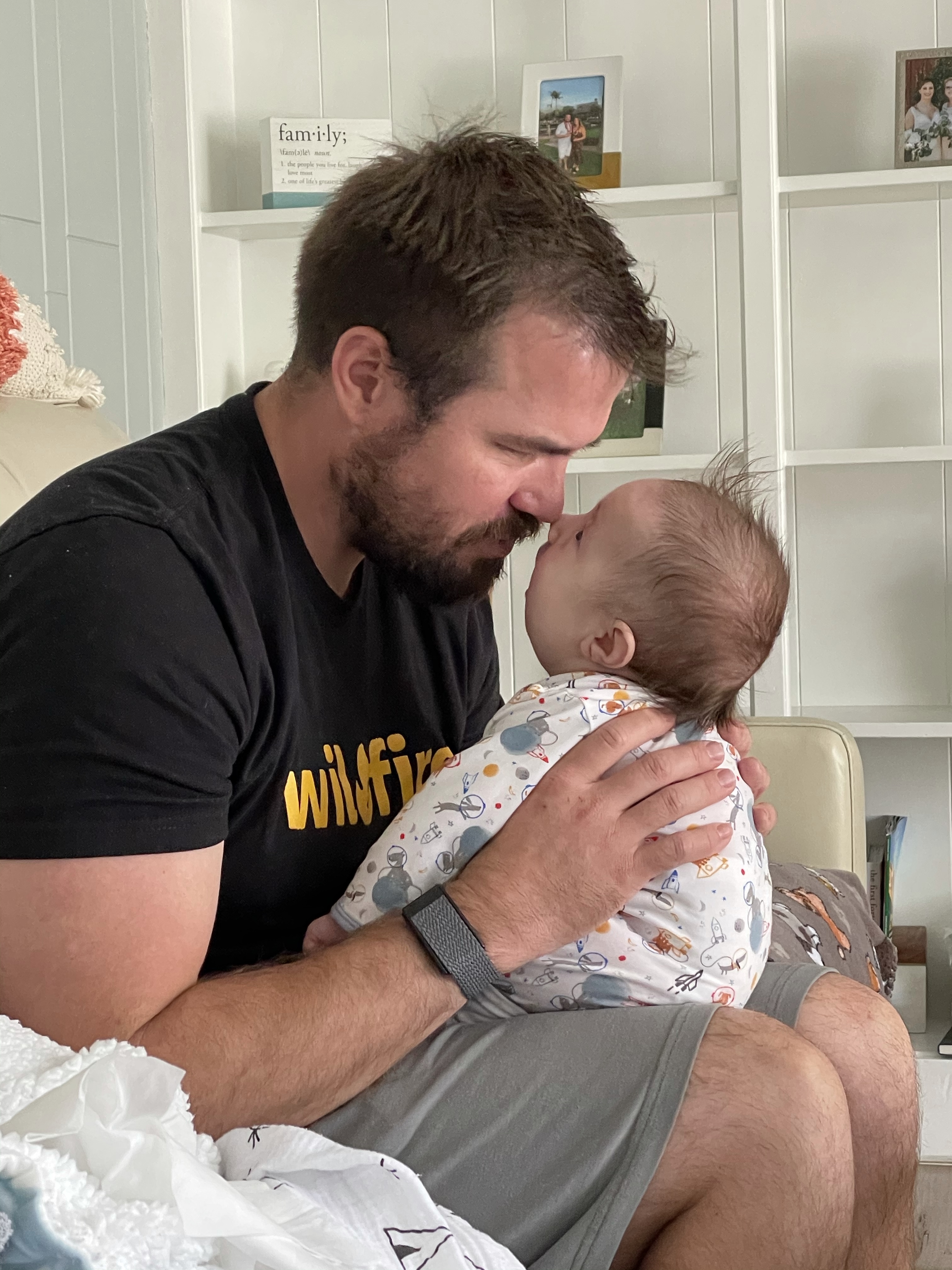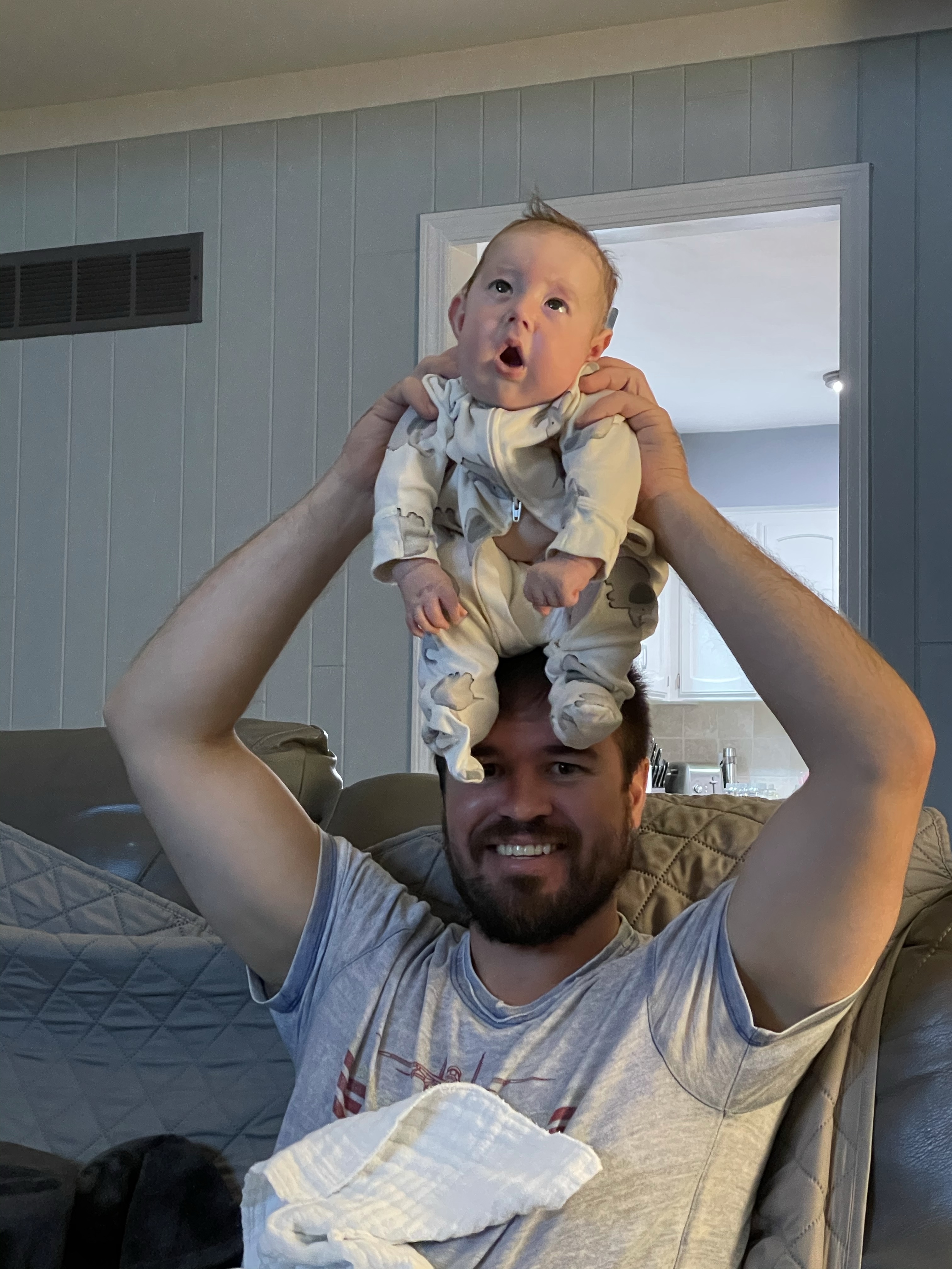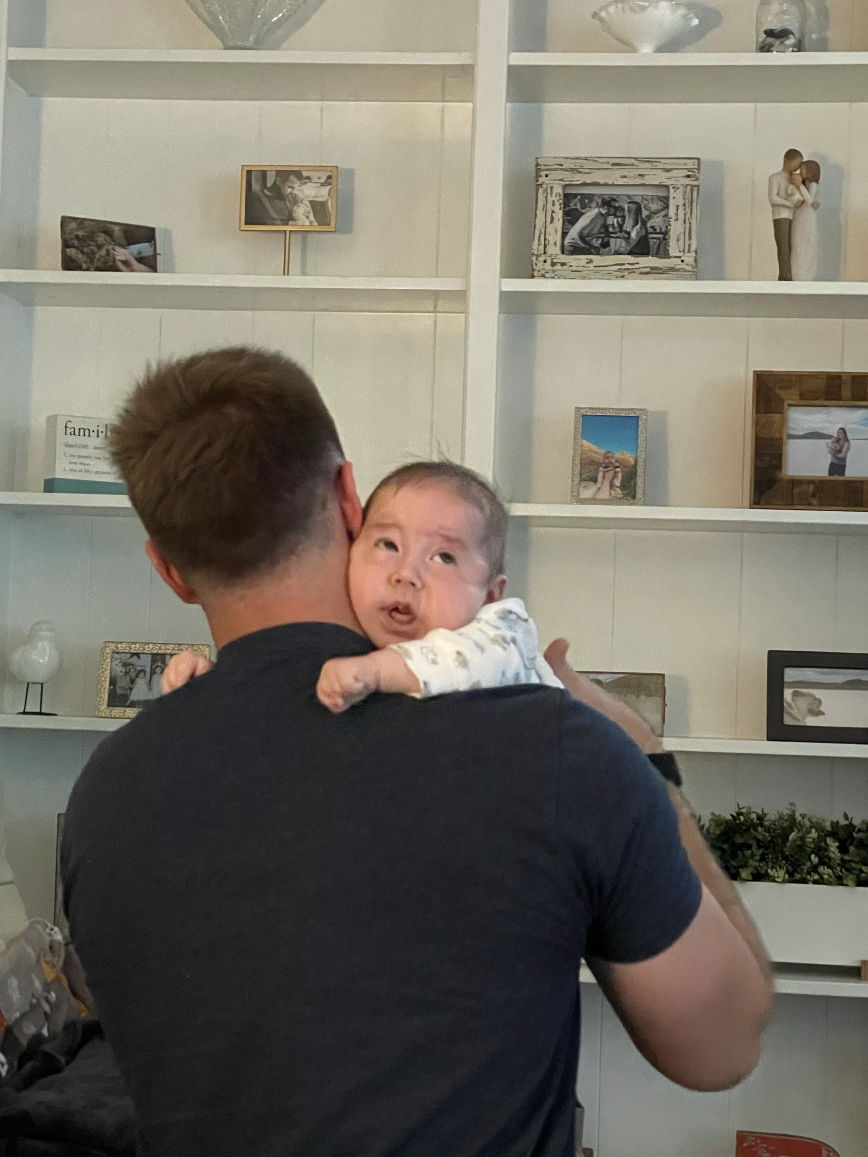 He’s been to 13 states and 5 national parks. He’s experienced 30 degree weather, 90 degree weather, has felt the warmth of the sunshine on his skin and the wind through his hair. He’s been off roading in a Jeep Wrangler. He helped blow out my birthday candles. He’s ridden on his grandpa’s John Deere tractor. He’s tried vanilla ice-cream. He’s heard birds chirping, dogs barking, motorcycles rolling by our house, laughter, and the sound of golf balls hitting the club face. He’s mastered burping. He’s learned how to drool like his brother. His eyes find all of the lights in the ceiling. He loves to sit up like a big boy. We found a ticklish spot on his ear and he’s become very familiar with big big hugs. He’s taken in the smell of fresh cut grass and has gotten his little nose in the roses and the lavender in our yard. He enjoys walking around the house propped up over my shoulder, and even clocks in a few minutes at Tyson’s desk during the week. We’ve had movie nights and movie days. We’ve taken lots of walks and have been to the park. He’s spent a little time in the garage gym motivating his parents. He tolerates tummy time. He coos and smiles a little. He’s handled more doctors appointments than I can count. He’s improved in his car seat and lets us know whenever we drive over a bump. He’s taken on the responsibility of watering the plants with Dad. Dax has found his hands – every once in a while we’ll catch him holding his hands while he sleeps. He kicks around a lot. He’s most at peace being outside, he’s gotten his feet in the grass, but prefers sitting in his Boppy on the patio. He enjoys listening to music and sways back and forth and bobs his head when he hears songs he likes. He’s graduated from baths in the kitchen sink to baths in the bathtub.