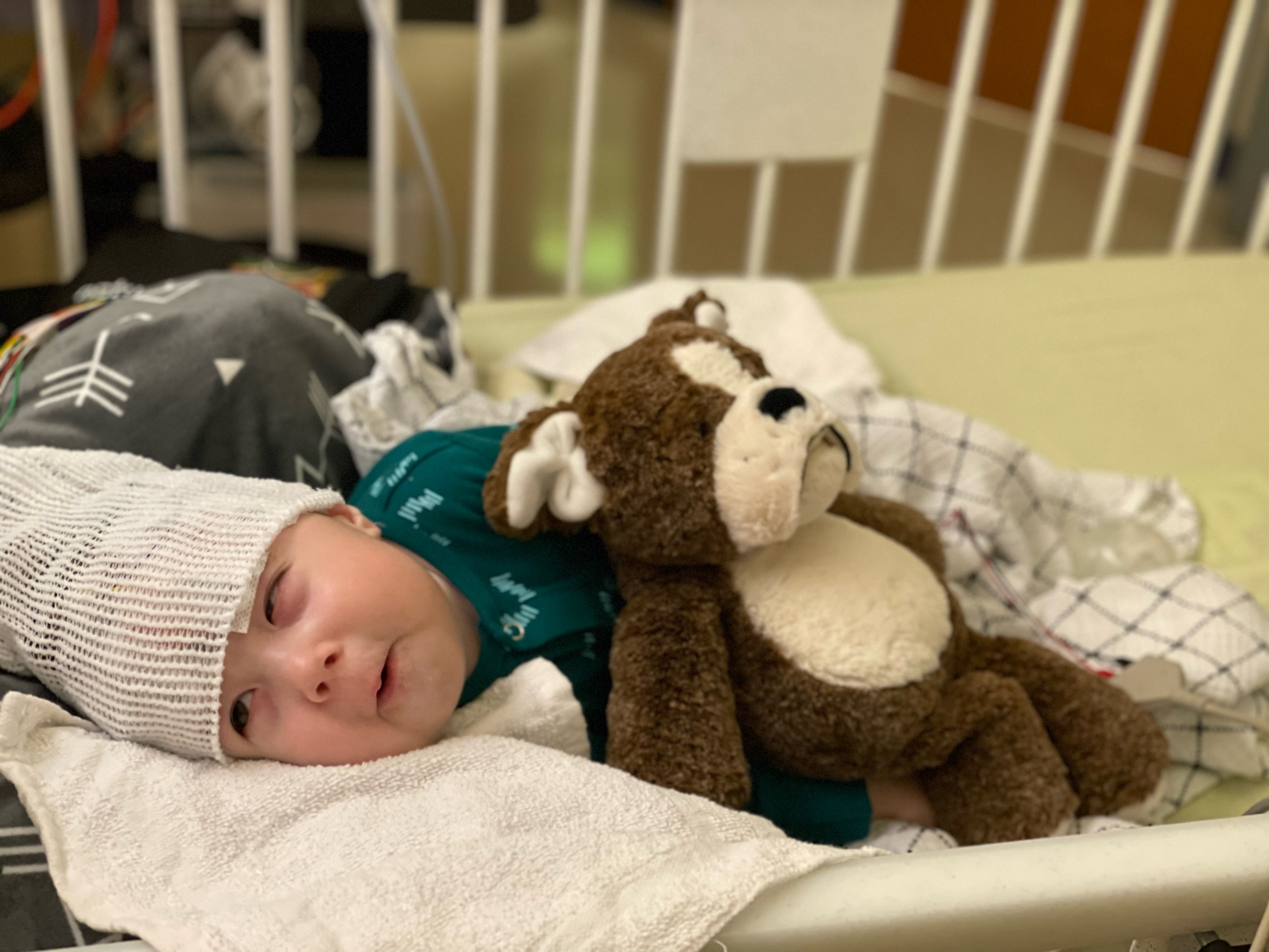 As mentioned before, Dax doesn’t have any coordination or control over his limbs, he has frequent little spastic motions; but he started doing a new movement a few days ago. The movements quickly transitioned to clusters – it was something we’d never seen before. We spoke to our neurologist as soon as we could and after our conversation, it was urgent to get an EEG on Dax. We were fortunate to have a room arranged for us at Children’s Mercy within a few hours of speaking with our neurologist. After an overnight EEG and video monitoring, we met with the neurology and epileptic team. It was confirmed that Dax was having epileptic spasms (also known as, infantile spasms). It’s true when they say go with your gut; we thought Dax was having infantile spasms. Tyson and I were able to recognize every episode that Dax had at home and in the hospital.
