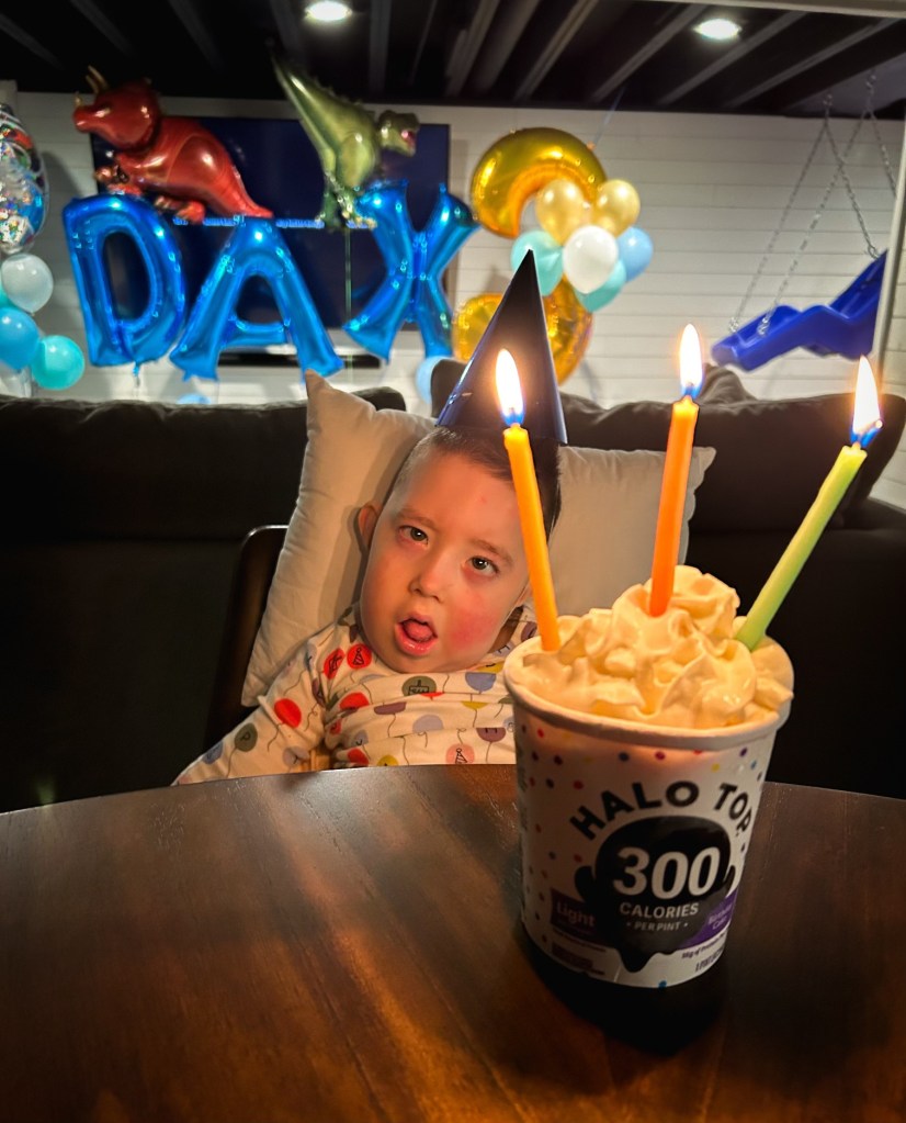 And at 4:55 PM, I was able to hold my sweet Dax in my arms. I can’t describe the peace and calmness I feel when I have my arms wrapped around him. It’s hard to describe how time feels, there’s always a mixture of emotions approaching his birthday; there’s excitement to celebrate a miraculous milestone, but at the same time, I want time to slow down, no amount of time will ever be enough. Dax goes through so much each day and his strength and fight to be with us earth side is incredible. He is a true miracle. I am so grateful that his life has surpassed over 1,000 days and his life has been filled with many memories, travel, love, and happiness. I feared that his life would be spent in and out of the hospital – and so far, it has been just the opposite. He is so loved.
