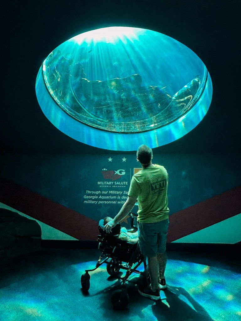 From STL we stopped in Atlanta for a couple of days. We knew after a long stretch Dax would need to rest. We had great weather in Atlanta – sunny, with a cool breeze, no humidity. It was perfect. We spent each day walking in the city and spent time at the park. Our hotel was across the street from the aquarium, we were able to walk there also! Bodie took pride in helping push his brother’s stroller and they both enjoyed seeing all of bright tropical fish, the dolphins, the whales, and the beautiful blue hues.