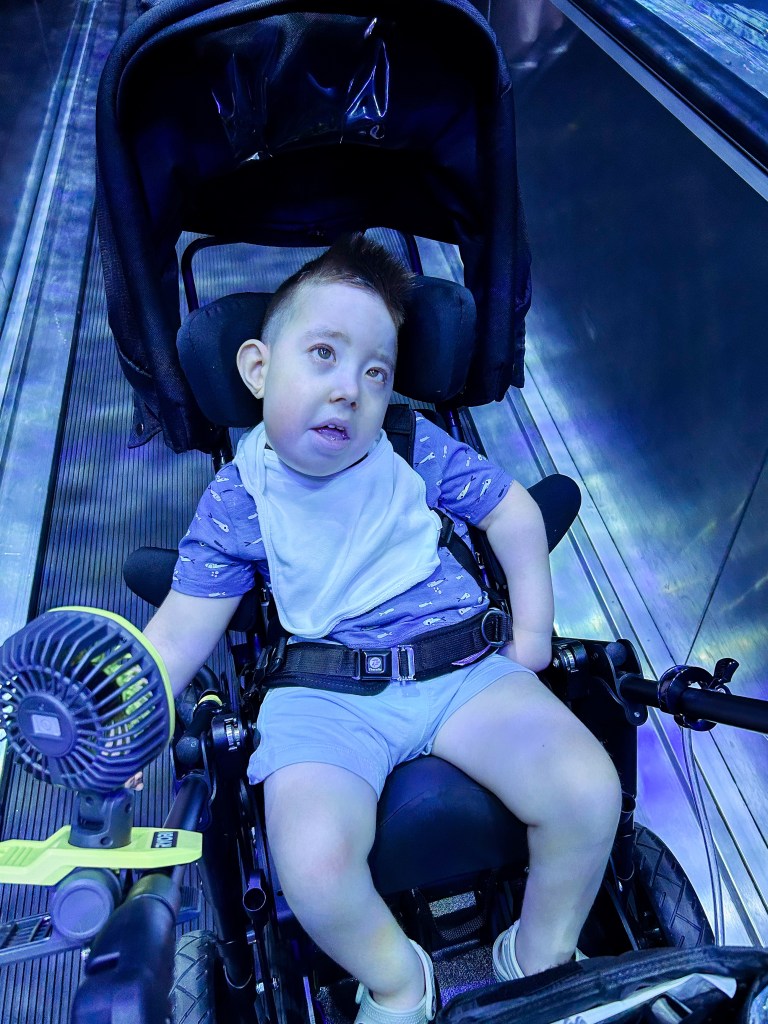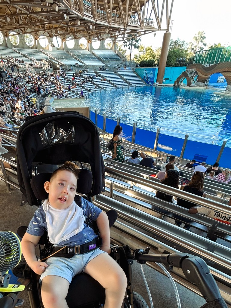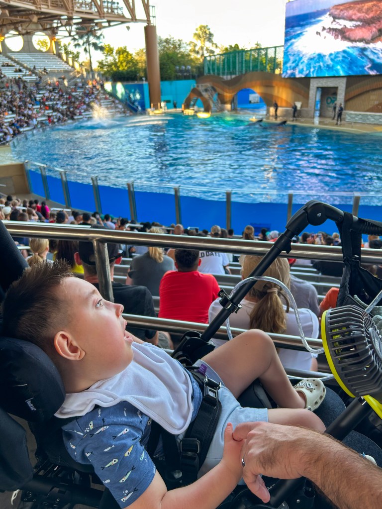 From Atlanta, we drove to Cocoa Beach. We got settled in our AirBNB, Dax rested some more, and he was in great shape to go to SeaWorld. Dax was smiley and his eyes were overall open a lot of the time. We got to the Orca Show extra early and found the most perfect seats. Dax loved the music during the show and Bodie’s mind was absolutely blown when he witnessed his first ever round of applause. He was so excited to join in on the clapping.