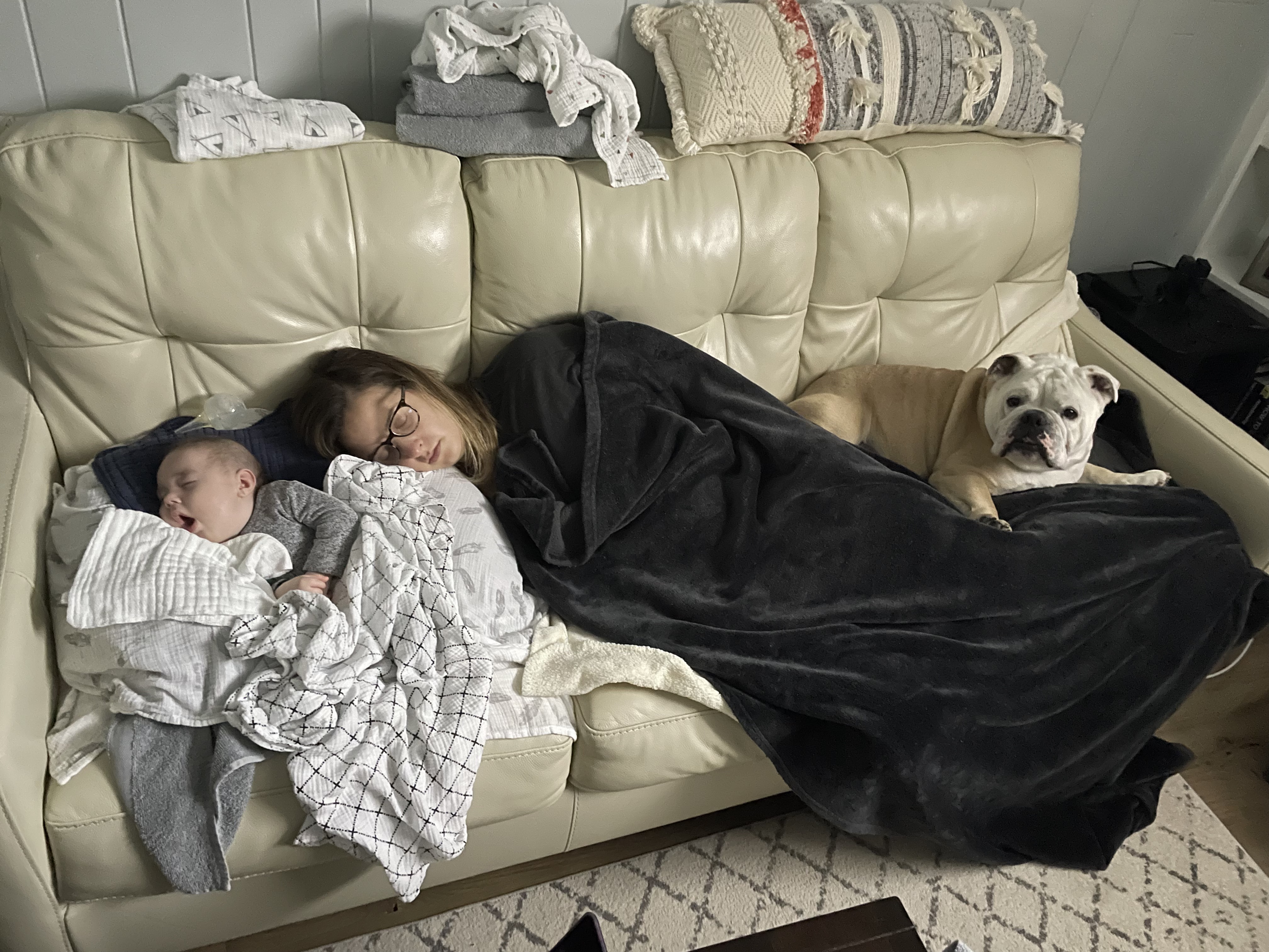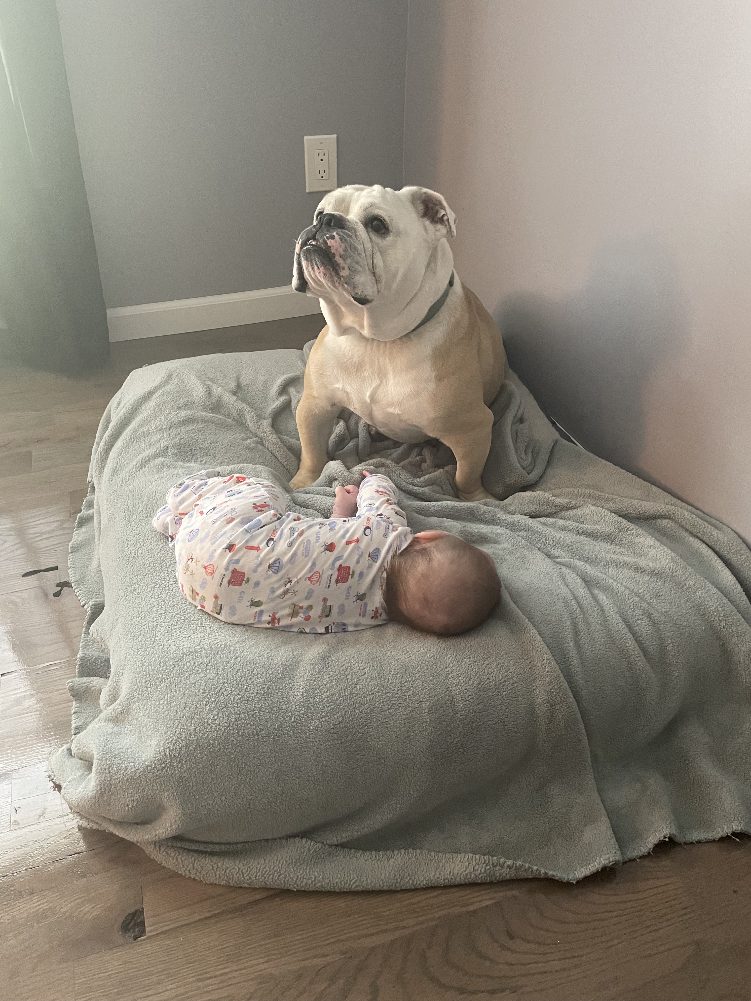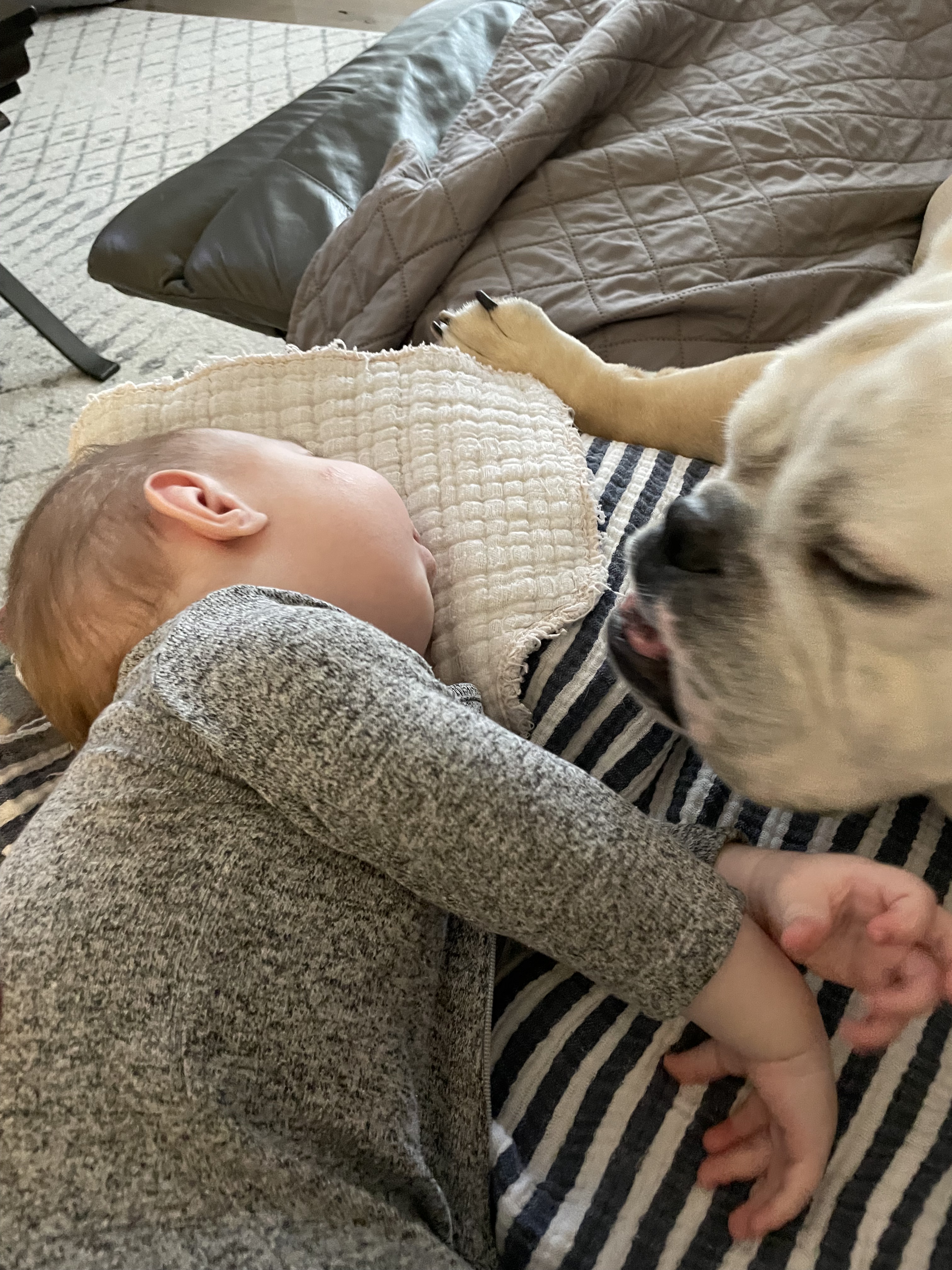 The bond we formed with this dog is so special, we truly relied on him for support through some of our most difficult moments and milestones. He was very in sync to the emotions in our home. He clung close to us in moments where the tears just wouldn’t stop. And he always kept a close eye on me – Ozzie and I were home together for almost 5 years (with Covid shutting down the world and me being home with Dax) – he stayed up all hours of the night with me to feed and care for Dax. Ozzie would always wait for me at the bottom of the stairs and we would walk up to bed together. He was in every room I was in. Ozzie tried his best to keep up with Bodie’s newborn phase, but the old pup was exhausted most days. He’d stay up in the night and watch me as I fed Bodie and Dax, and then he’d sleep until almost 11 am. He spent many afternoons on the couch with Dax, and on the floor with Bodie while he did tummy-time (apparently not enough because the kid still needed a helmet).
