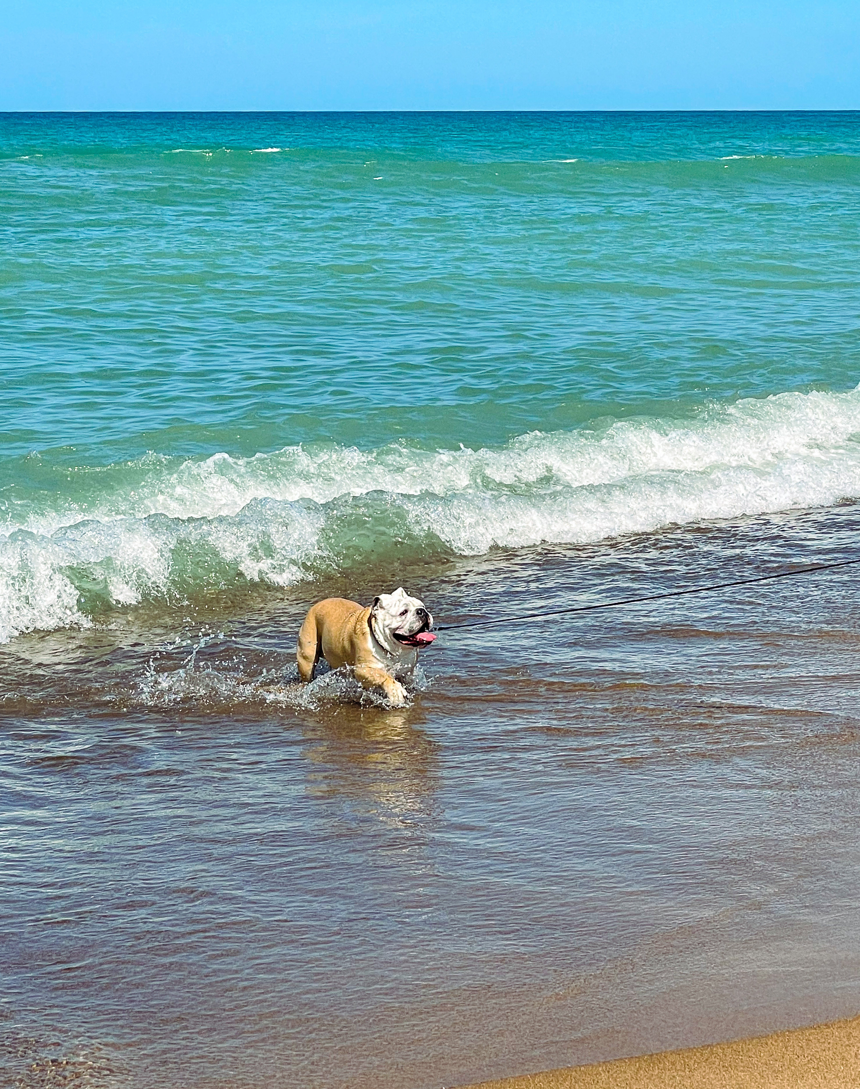 We adopted “Easy” at just 8 months old. A family posted him on Craigslist desperately wanting to get rid of this dog that they couldn’t potty train. The owner was getting ready to have a baby and she couldn’t handle the stress of this dog, he was living his life in a travel kennel. We adopted him and with a couple of strict months of training and name change, “Ozzie” was potty trained and beginning to relax and find his place in our home. He was the protector on the patio, letting the neighborhood always know who’s boss. He enjoyed chasing fireflies in our backyard, loved snuggling on our laps on the couch, he loved ice-cream, hated pickles, and was a polar bear in the winter. He LOVED rolling around in the snow. We’re so very grateful for the winter we had, Ozzie could experience the joy of the snowfall and roll around and play (Tyson and I watched Ozzie roll with excitement as we both talked about how it could be his last winter). In the warmer months, Ozzie loved playing in the waves in Lake Michigan, I have never quite witnessed the zoomies like I did the day that Ozzie saw Lake Michigan for the first time. Lastly, he wanted to be included in just about everything – whether it was hanging out and watching a Chiefs game in the basement, or enjoying a warm spring day on the patio, Ozzie just wanted to be there. He had a serious case of FOMO.
