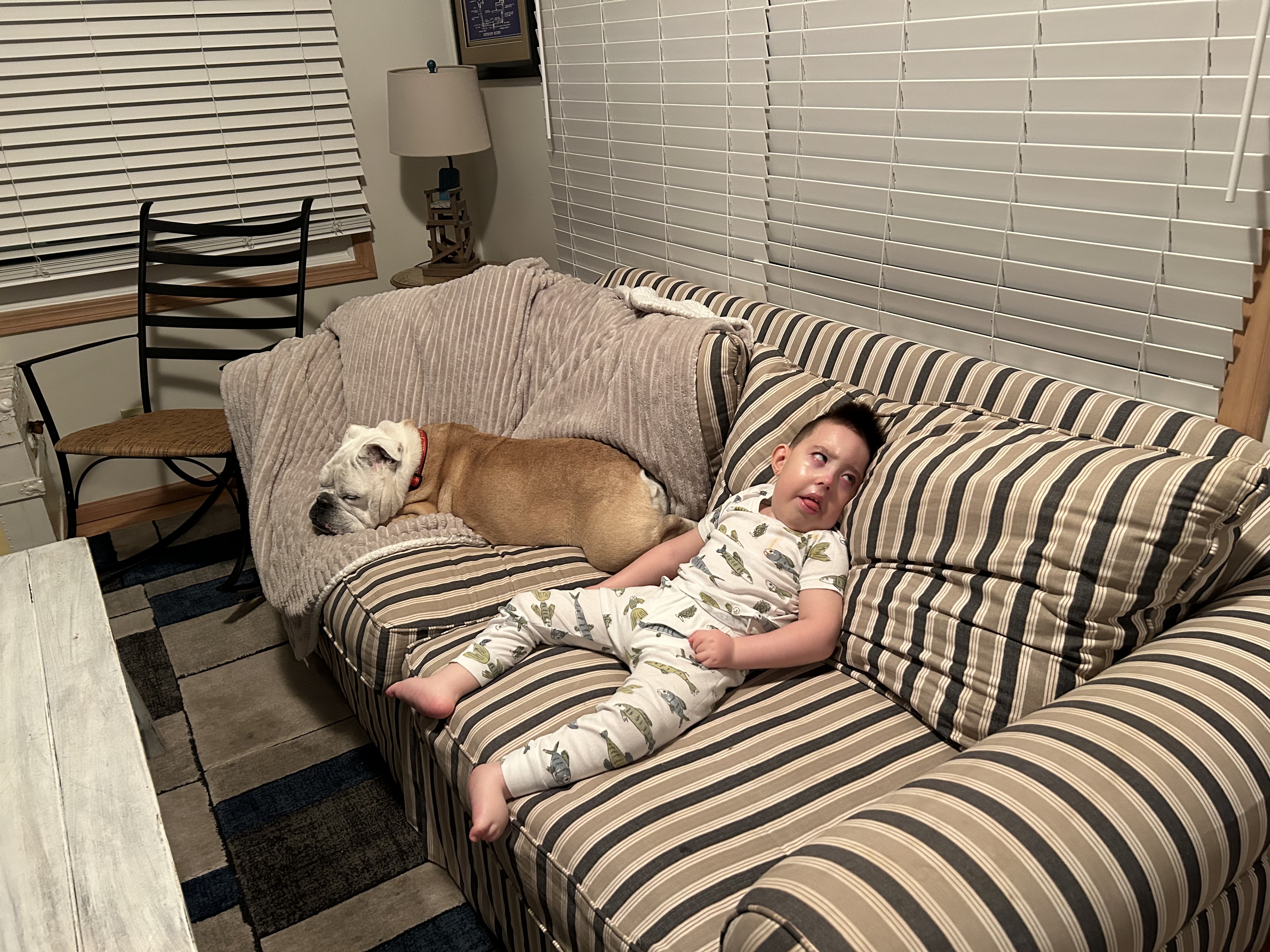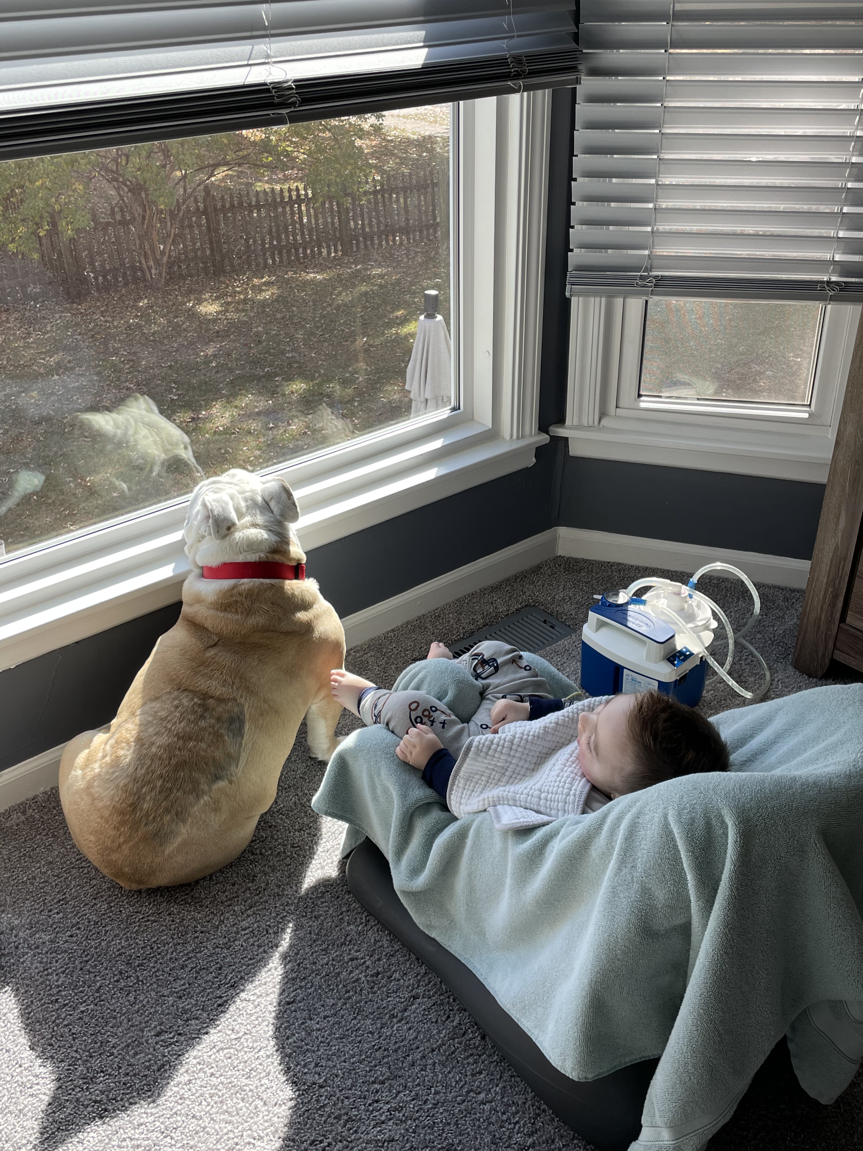 In the early years, Ozzie went everywhere with us; we would specifically look for dog-friendly restaurants so Ozzie could join. He enjoyed many patios and breweries in Kansas City, he also had a short phase of a dog-park obsession. Ozzie brought joy to everyone he encountered. And Ozzie’s life is another testament to God always being in control. We needed Ozzie just as much as he needed us. We trained him to be a Pet Pal at Children’s Mercy, he volunteered there for a few months, then we had a son with special needs. Ozzie was so in tune to Dax. Ozzie would wake up in the morning, and the first thing he’d do is go look for his buddy, Dax.